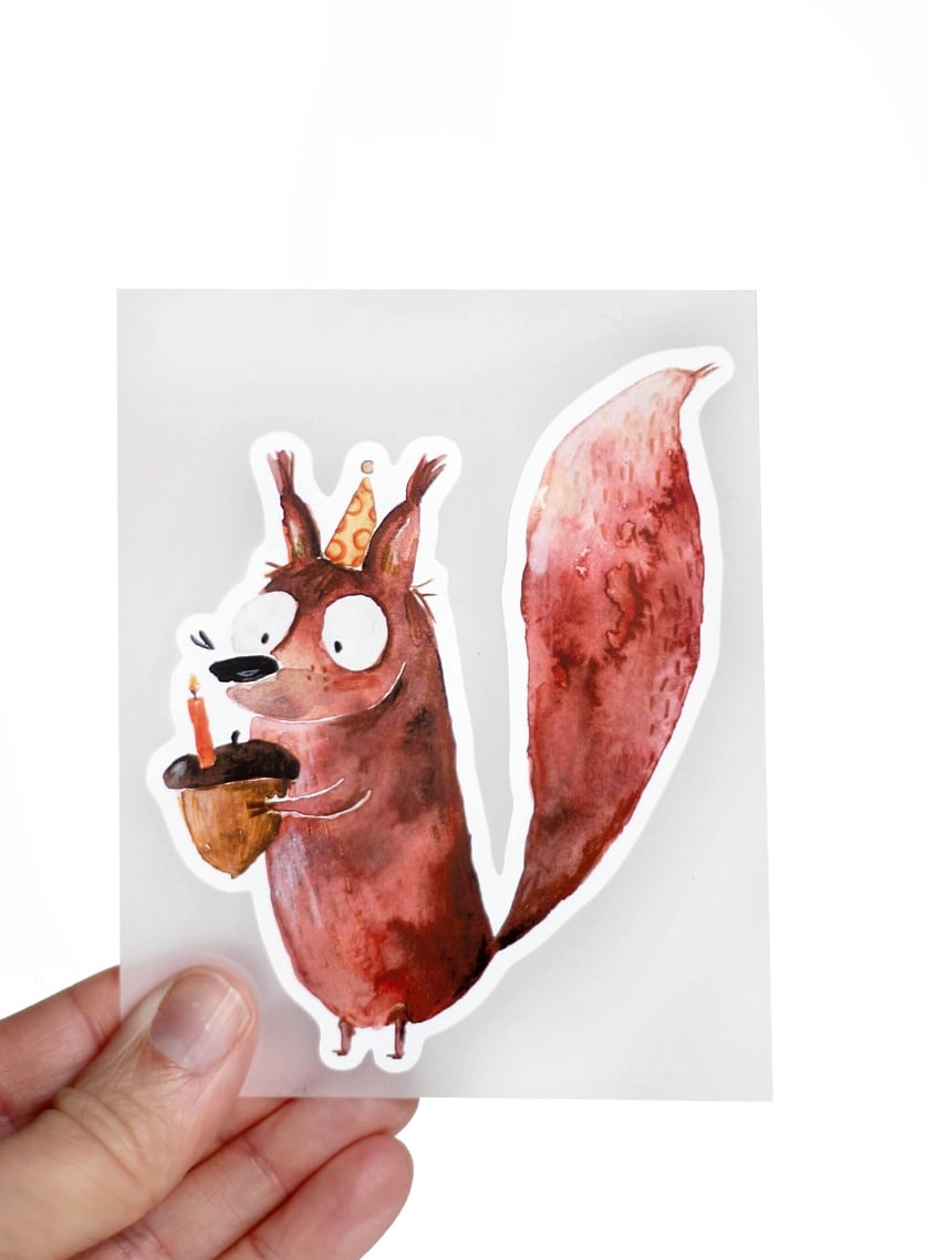 Freches Eichhörnchen Bügelbild. Einfach aufbügeln und schon ist jedes Kleidungsstück ganz besonders. Oder du verdeckst damit einen Fleck oder ein Loch. Einfach Bild von der Folie abziehen, auf den Stoff platzieren und festbügeln.