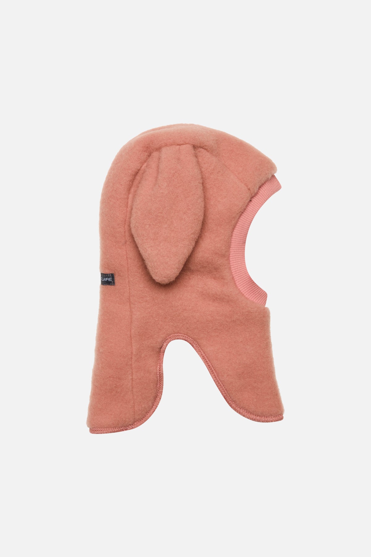 Warme und weiche Schlupfmütze von der dänischen Marke Hust and Claire. Sie ist aus Merino-Wollfleece und umschliesst das Gesicht wunderbar. An der Gesichtsöffnung befindet sich ein breiter gerippter Rand. Als besonderes Detail hat sie seitlich lange Ohren. Der Hals und Nackenbereich wird auch gewärmt. Auf der Rückseite befindet sich eine kleine grau Logo-Applikation. Innen ist die Mütze mit feiner Baumwolle abgefüttert.
