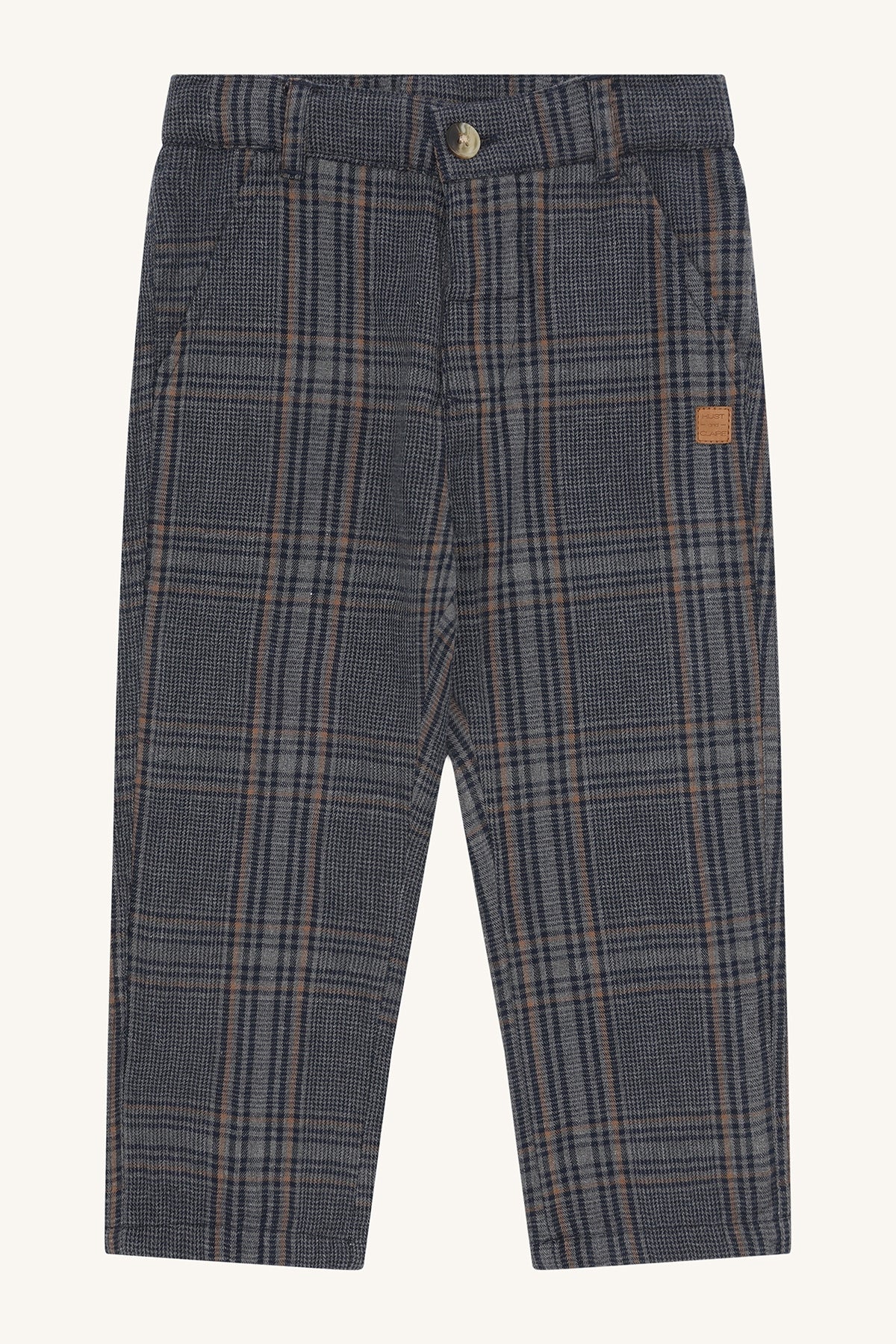 Zwei Seitentaschen und dezent angedeutete Gesässtaschen unterstreichen den klassischen Look, während das edle Karomuster der Hose einen eleganten Charakter verleiht. So lässt sie sich vielseitig kombinieren – festlich zu Hemd oder Body, stilvoll zu Strickpullover oder als warmer Begleiter für Familienfeiern, Kita und Winterausflüge.
