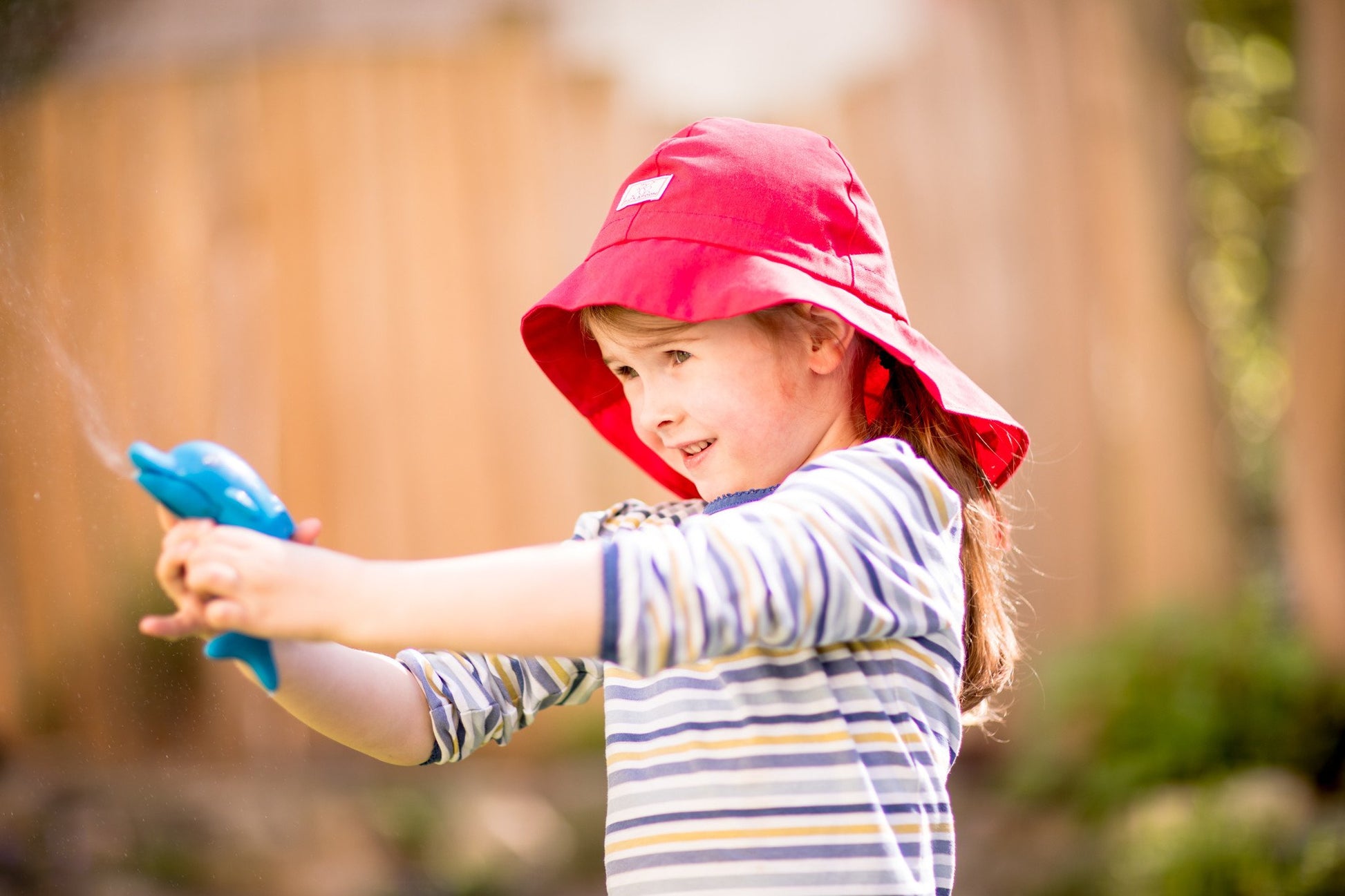 Dieser Sonnenhut mit dem Namen "Feuerwehr" von Pickapooh aus reiner Bio-Baumwolle (kbA) ist ein beliebter Klassiker mit integriertem UV-Schutz. Die breite Krempe schützt Gesicht, Nacken und Ohren vor der Sonne. Mit Bändern an den Seiten lässt er sich am Kinn zusammen schnüren. Mit dem Band hinten kann man den Hut in der Weite verstellen. Das hautfreundliche und atmungsative Material verhindert ein Schwitzen unter der Mütze an warmen Tagen. Der UV Schutz beträgt 80 und ist geprüft nach dem UV Standard 801.