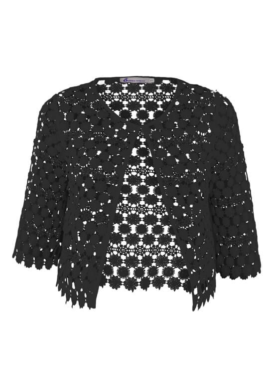 Festliches Umstandsjäckchen der Queen Mum, schwarz. Kurzer Schnitt mit 3/4 Ärmeln.