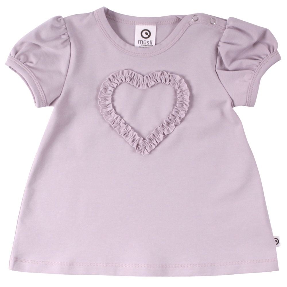 T-Shirt aus GOTS zertifizierter Biobaumwolle von der dänischen Marke Müsli. Mit einer schönen Herzapplikation. Im Schulterbereich befinden sich Druckknöpfe, um das einfache An- und Ausziehen zu erleichtern.