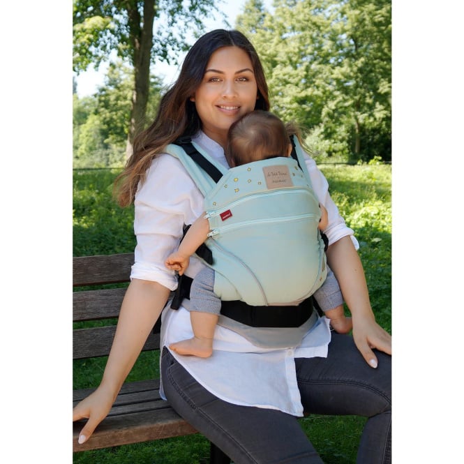 All-in-One Produkt, eine Größe für alle Eltern und alle Babys, kein Zubehör nötig, diese Trage wächst wirklich mit