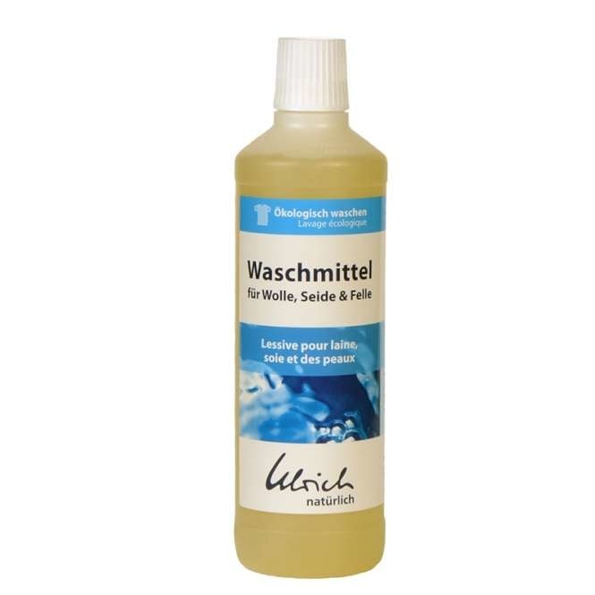 Ulrich natürlich Waschmittel für Wolle und Seide Geeignet für alles Feine und Empfindliche wie Wolle und Seide. Enthält besonders schonende waschaktive Substanzen aus Kokosöl und Pflanzenschmierseife und ist leicht rückfettend durch Lanolin. Auch für waschbare Felle geeignet. . 500 ml Für alle empfindlichen Materialien wie Wolle und Seide Besonders schonende, natürliche Inhaltsstoffe Auch für Felle geeignet Ausreichend für ca. 25 Waschgänge Das ph-neutralen Waschmittel ist frei von erdölbasierenden Rohstoffen und gentechnisch veränderten Bestandteilen. Ohne Konservierungsmittel, Phosphate, optische Aufheller und ohne zugesetzte Farb- und Duftstoffe. Sie sind sanft zur Haut und für die Natur biologisch abbaubar. Inhaltsstoffe gem. EU Verordnung 648/2004: < 15% Amphotere Tenside pflanzl. Herkunft, aus nachwachsenden Rohstoffen Milchsäure, Wasser, Lanolin Verzicht auf Konservierungsmittel, ohne petrochemische Inhaltsstoffe. Dosierung Pro 2,5 kg Trockenwäsche 2 Verschlußkappen (20 ml) bei Maschinenwäsche 1 Verschlußkappe (10 ml) bei Handwäsche. Anwendungshinweis: Unbedingt Waschanleitung der Wäschestücke beachten. Kleidungsstücke im Feinwaschgang oder bei Handwäsche bei max. 30° Grad waschen. Ev. Flecken mit Ulrich natürlich Flecklöser vorbehandeln. Mit viel Wasser ausspülen.