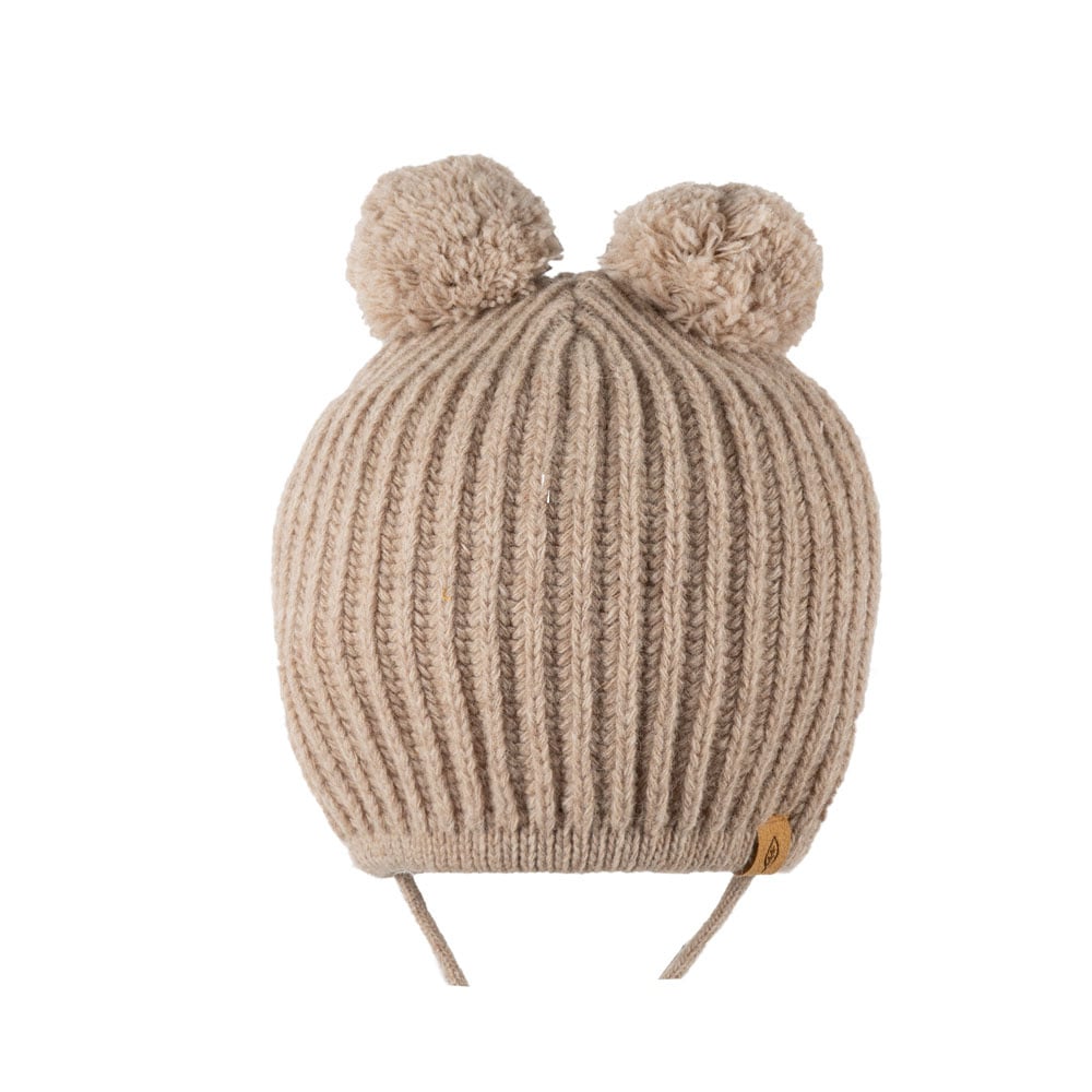 Süsse Babybinde Bommelmütze mit zwei Bommeln aus 40 % recycelter Wolle, 40 % Merinowolle und